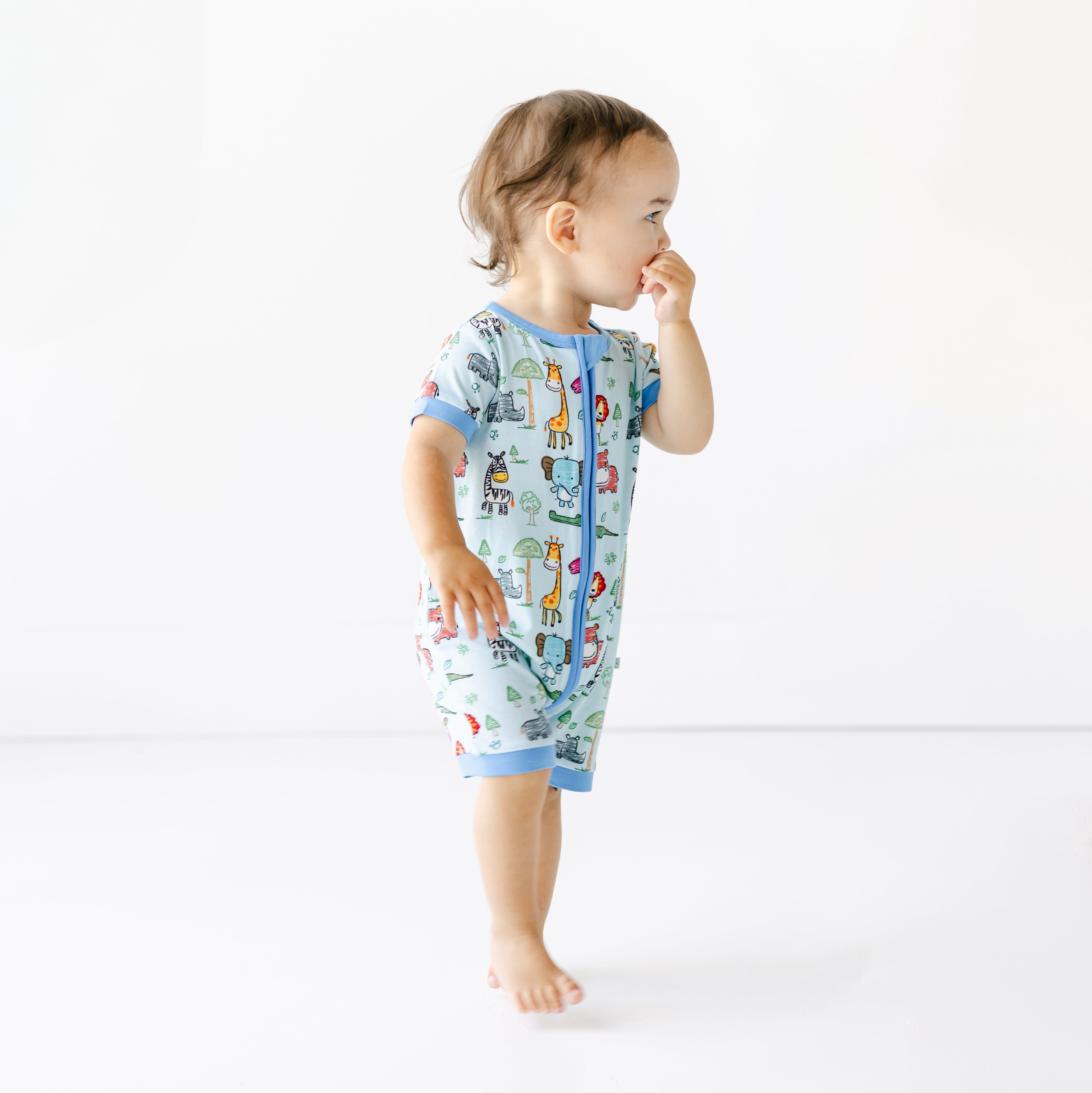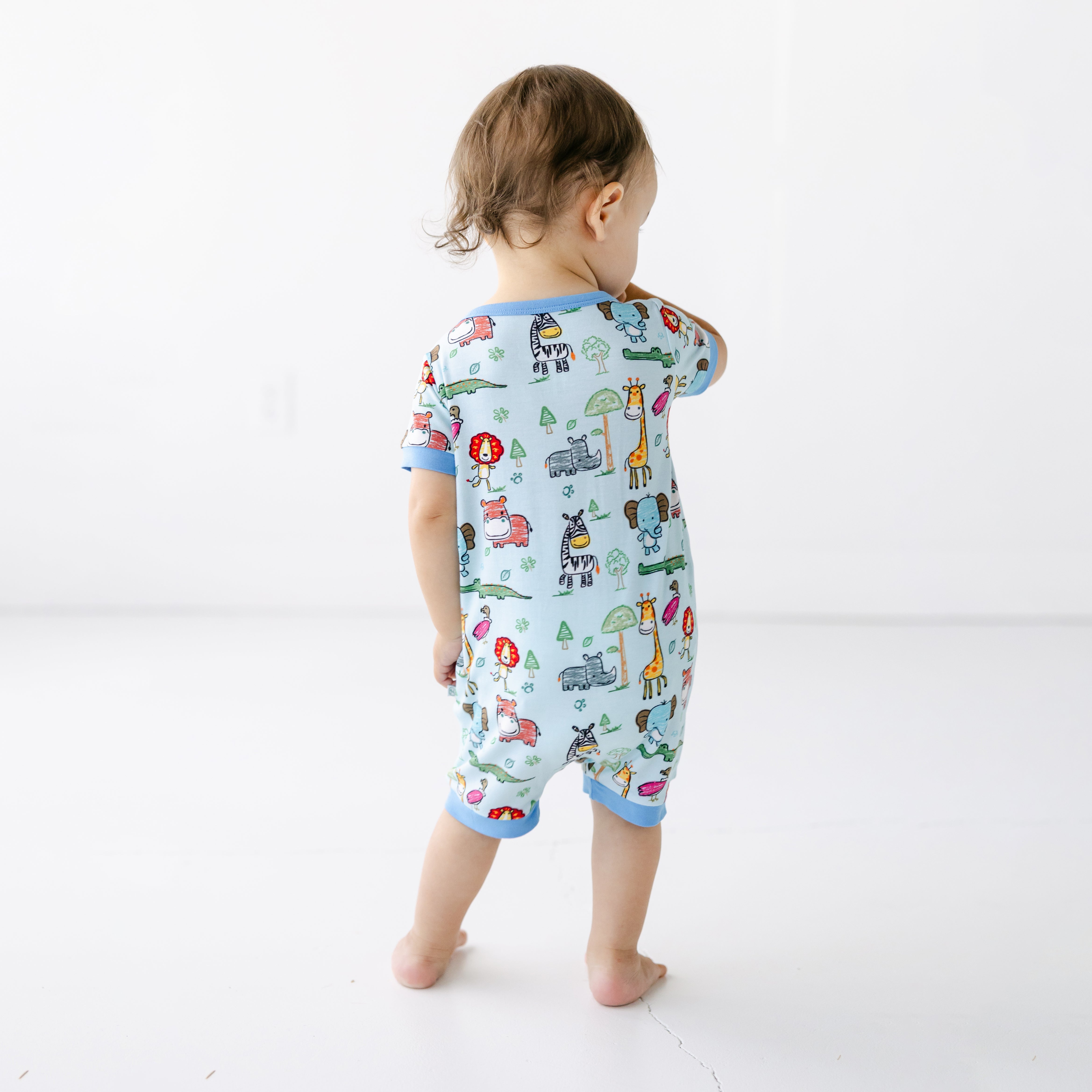 Introduce your little one to a world of adventure with our Color Me Wild Short Zippy! These baby bamboo pajamas feature a fun animal print, perfect for curious minds. Made with 95% bamboo viscose and 5% spandex, these bamboo pajamas for summer are incredibly soft and stretchy, ensuring ultimate comfort. The short sleeves and shorts design, along with a convenient zipper, make this bamboo short zippy set perfect for easy changes. Keep your baby cool and cozy in these adorable bamboo pajamas zippy!