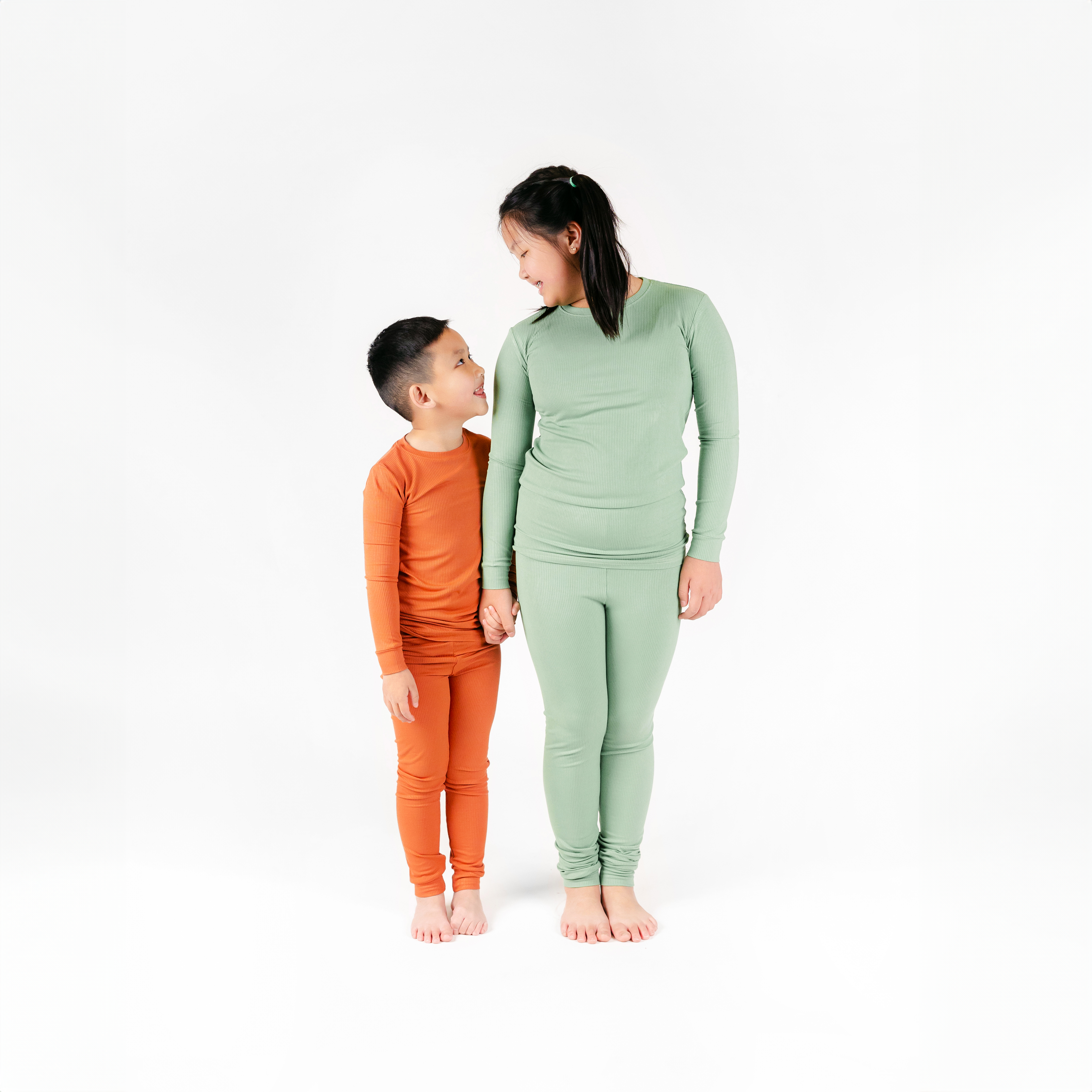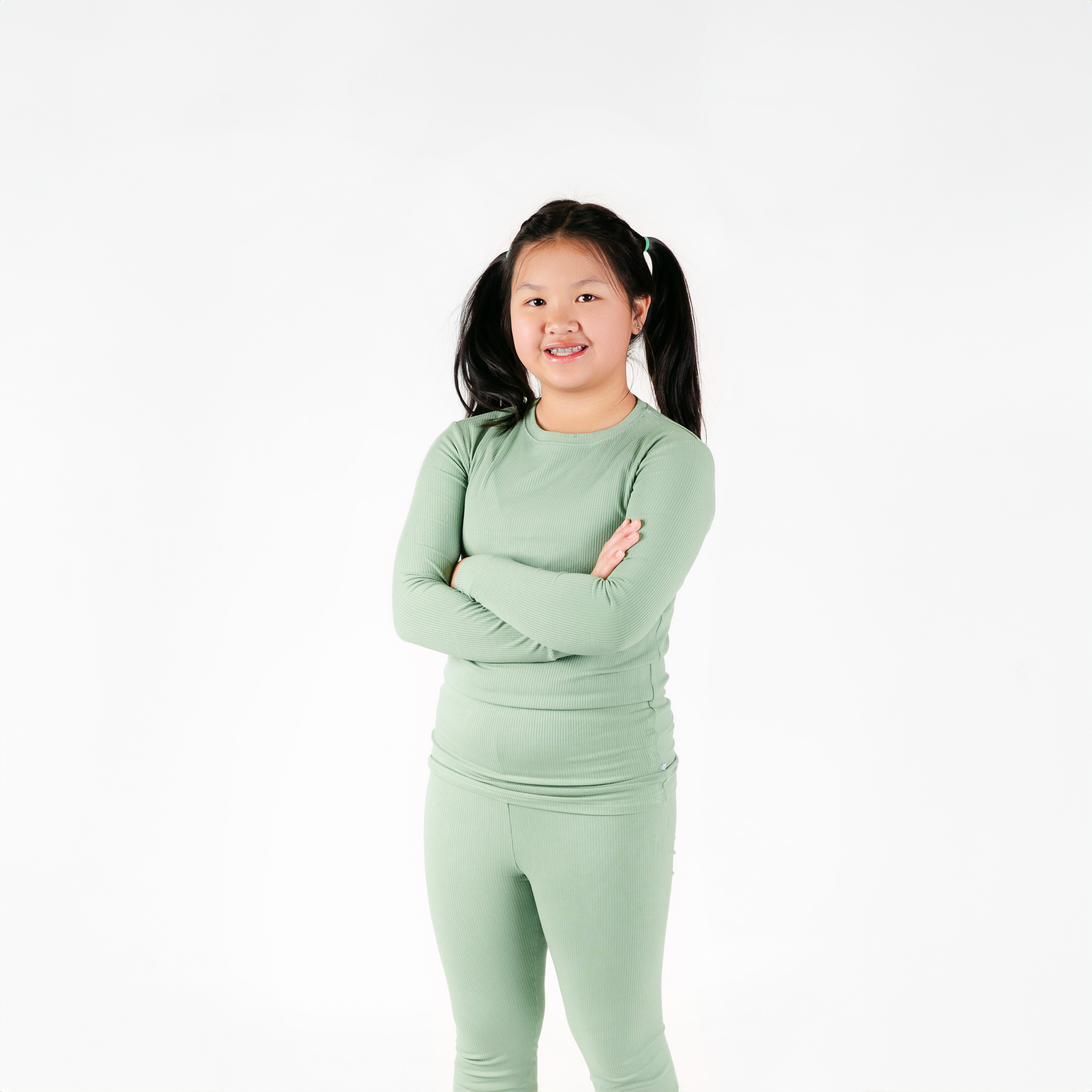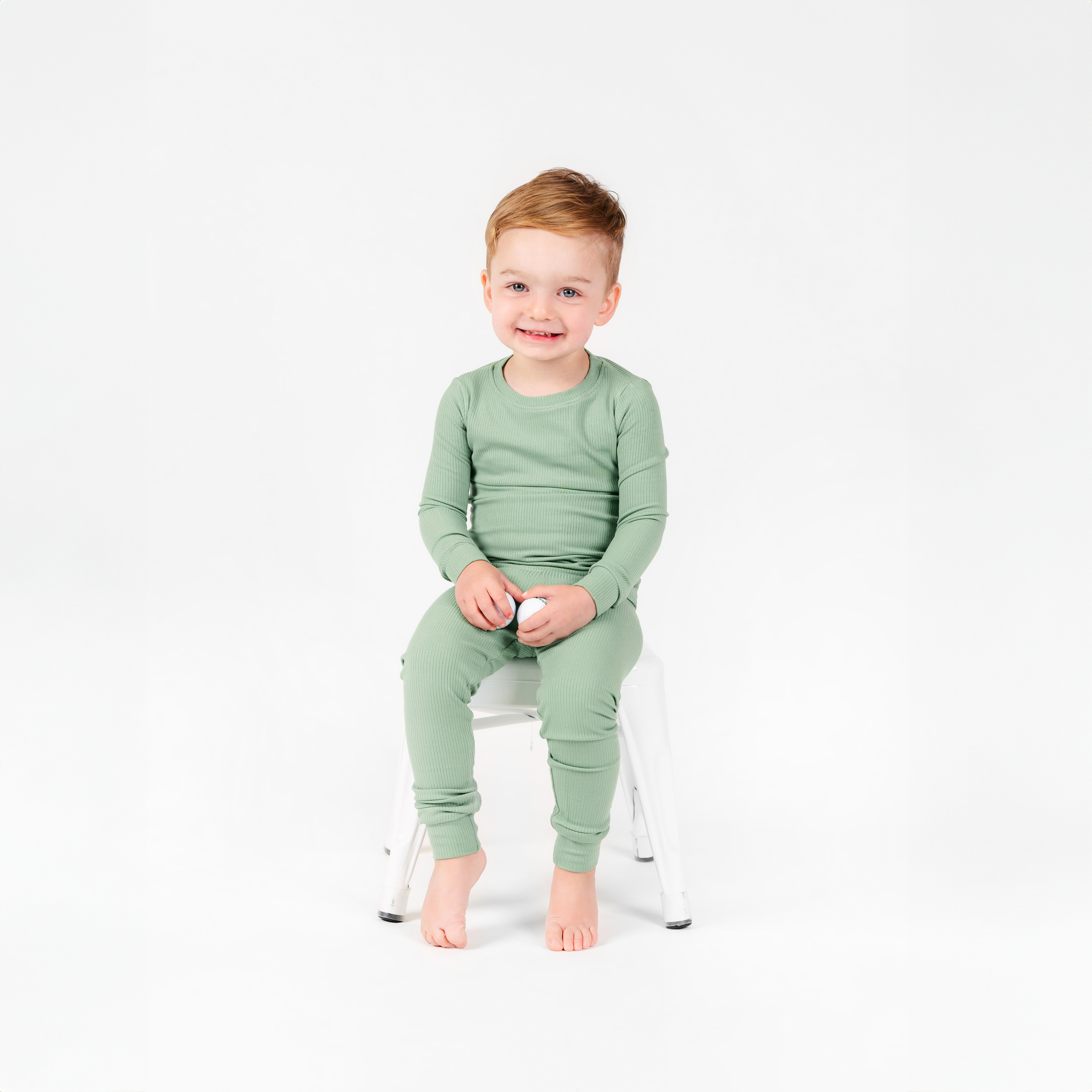 We love our RIBBED PJs so Matcha! Introducing our solid ribbed bamboo print, with a neutral green shade, perfect gender neutral PJs for the littles in your life. We prioritized the quality of our material, bringing a luxuriously smooth fabric to each pattern. Designed to stretch and grow with your little and last 3x longer.